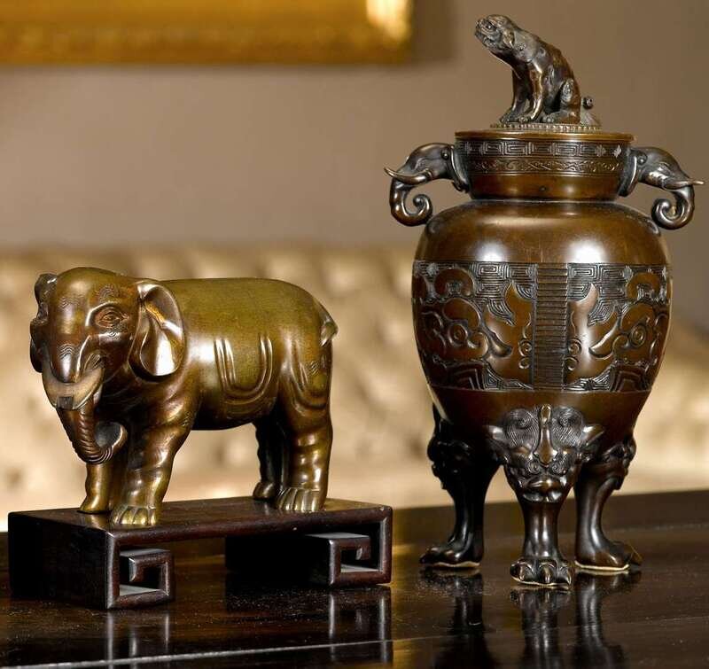 Comprising bronze covered censer and bronze elephant figure. (2).