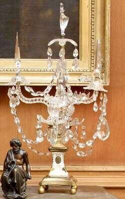 Pair of porcelain, bronze and glass four arm candelabra 19th century