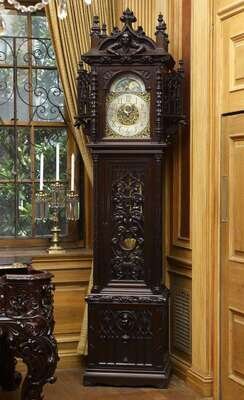 Highly carved mahogany grandfather tall case clock late 19th century