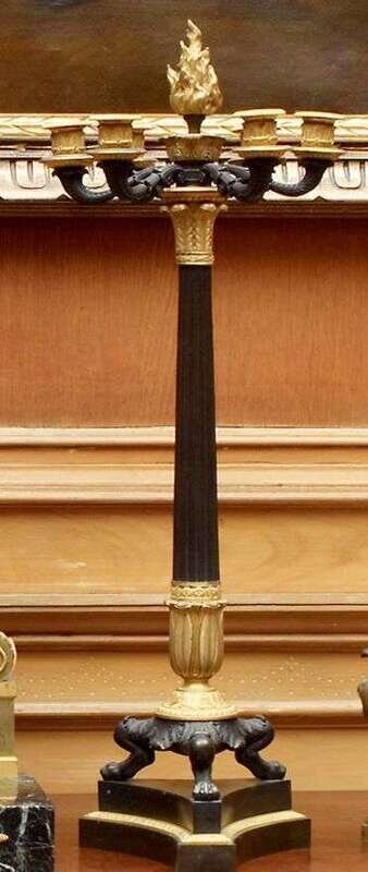 Pair of Empire style gilt and patinated bronze six light candelabra late 19th century
