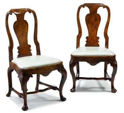 Pair of George I walnut side chairs circa 1720