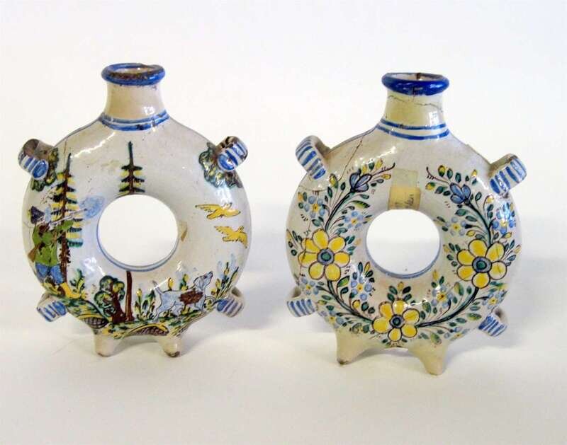 Pair of Delft polychrome glazed bud vases 18th centuy
