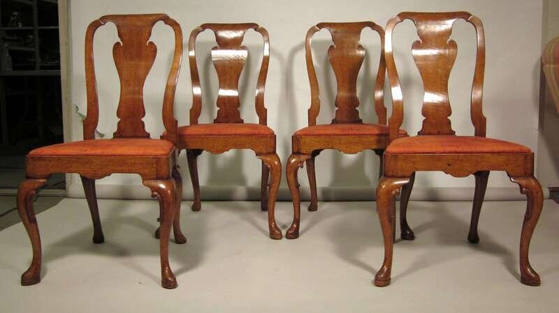 Set of four George II style walnut side chairs