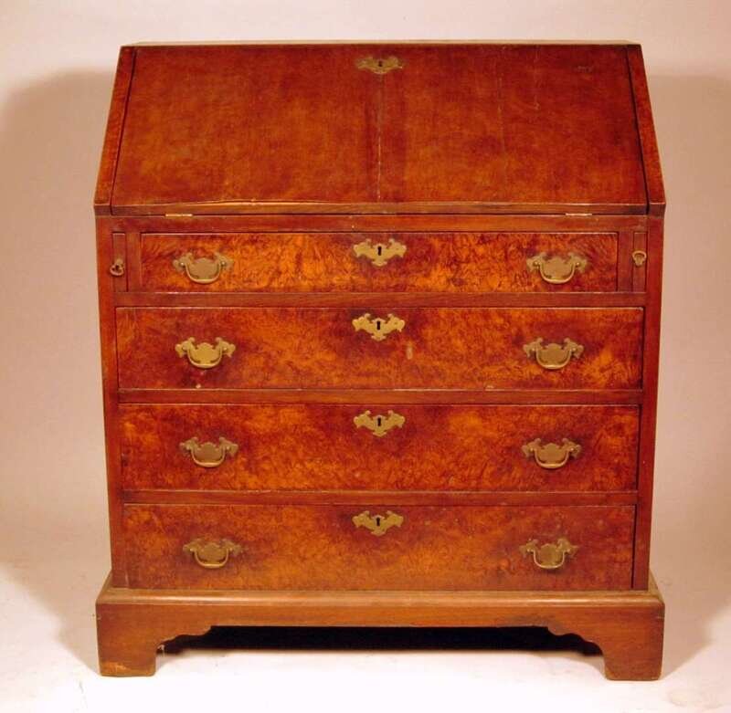 George II style slant front walnut bureau