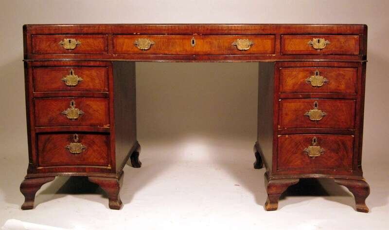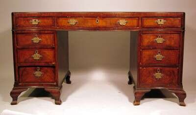 George III style mahogany and feather banded pedestal desk 19th century