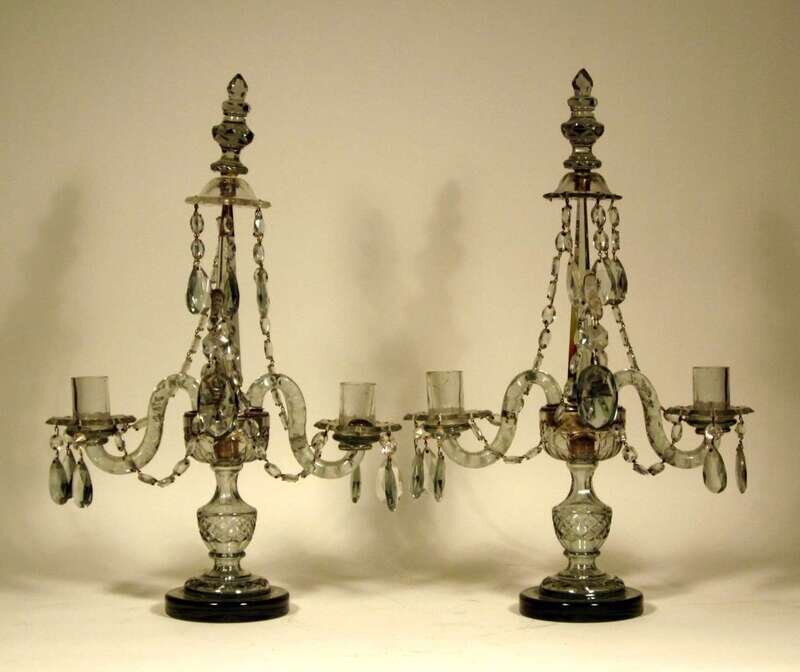 Pair of Anglo-Irish smoked glass girandoles early 19th century