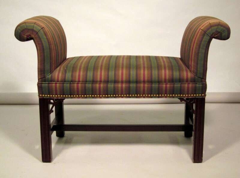 The rectangular seat with scrolled ends, raised on fluted straight legs.
