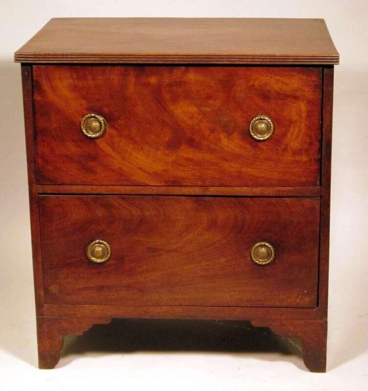 The reeded rectangular top over two short drawers, raised on bracket feet.
