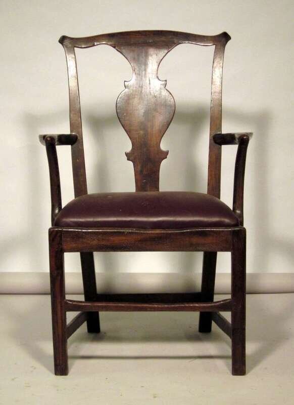 The shaped crest rail over a vasiform splat, issuing two shaped arms above a drop-in seat, raised on square joined legs.