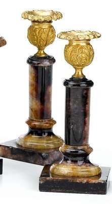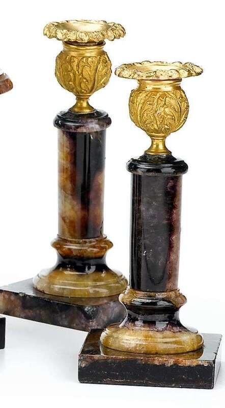 Pair of Regency Blue John and gilt metal candlesticks early 19th century