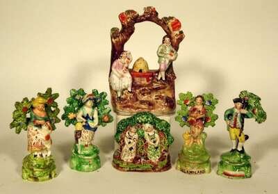 Six Staffordshire figure groups 19th century