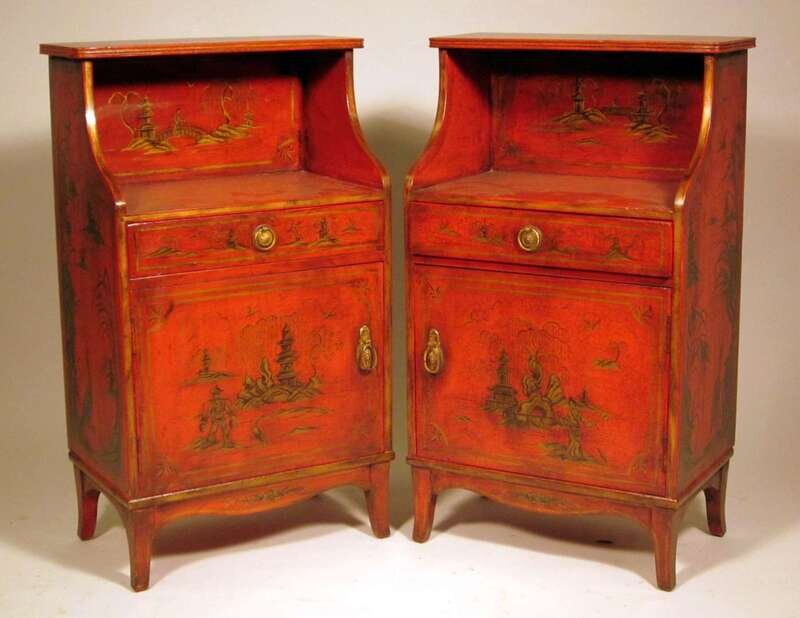 The short rectangular top with a shaped shelf, above a single drawer and cupboard door, raised on square feet.(2).