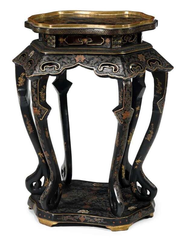 Pair of Chinese Export black lacquer and gilt stands late 19th century