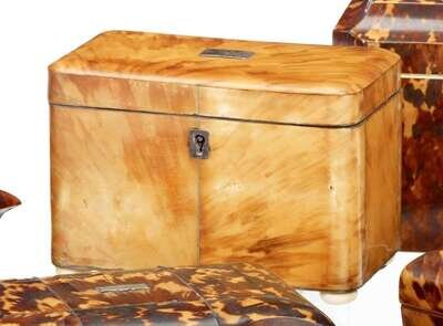 Diminutive late Georgian blonde tortoiseshell tea caddy early 19th century