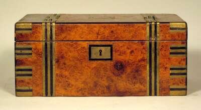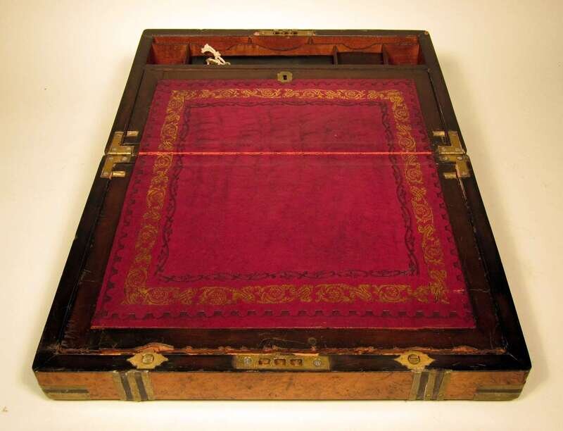 Victorian burl walnut and brass bound writing slope 19th century