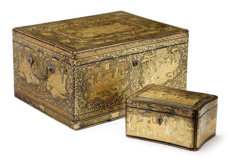 Chinese Export gilt lacquer tea caddy 19th centurys