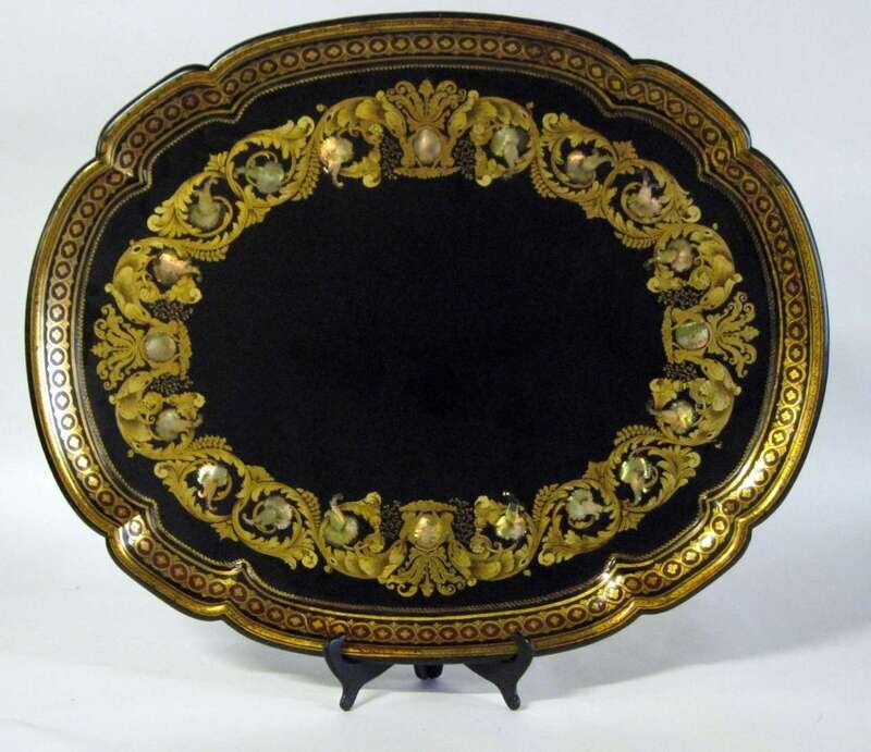 Victorian papier mache and mother-of-pearl inlaid tray circa 1860