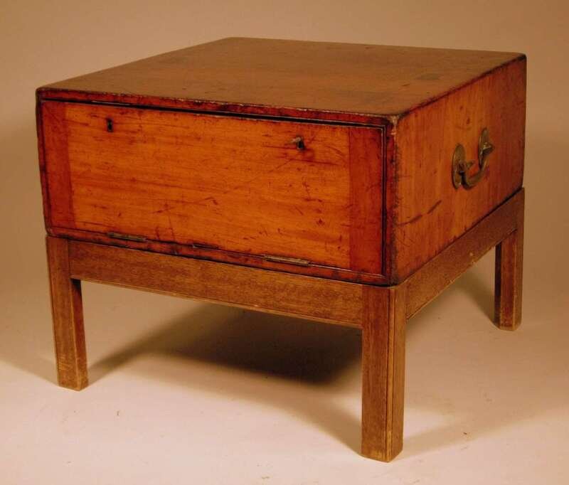 The square top set with fitted free moving handles over drop-front drawer, raised on square legs.
