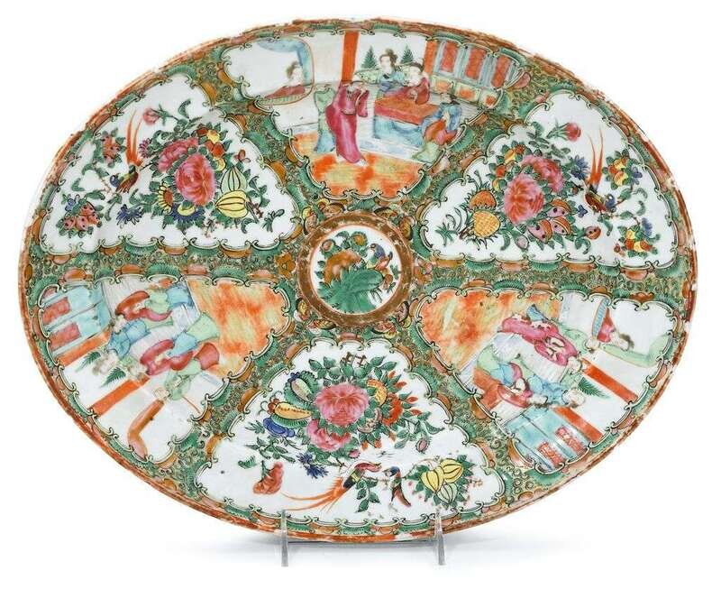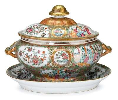 Chinese Export rose mandarin porcelain tureen and trays 19th century