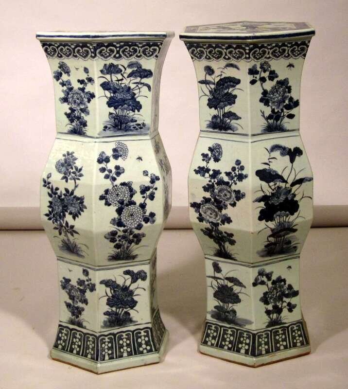 Pair of Chinese Export blue and white porcelain stands 20th century
