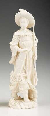 Chinese carved elephant ivory figure of a female archer late 19th century