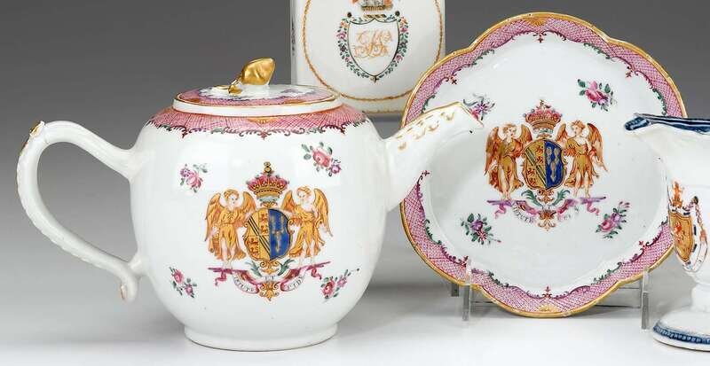Chinese Export porcelain Earl of Oxford armorial teapot and underplate mid 18th century