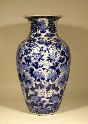 Large Japanese blue and white porcelain baluster vase late 19th century, probably arita