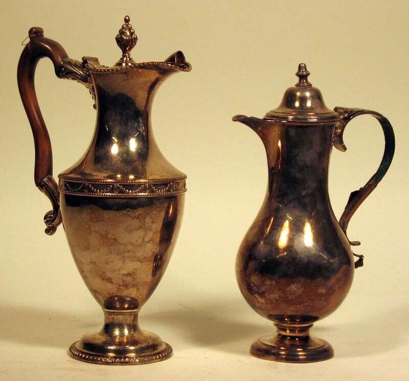 Two Georgian Sheffield plate claret jugs late 18th century