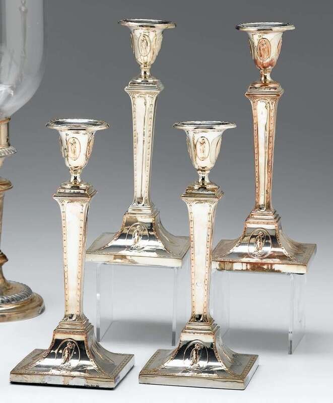 Set of four George III Sheffield plate candlesticks circa 1790