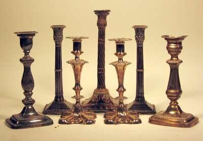 Group of seven English Sheffield plate candlesticks 18th/19th century