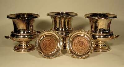 Comprising of three Georgian style wine coolers and a pair of wood based coasters.(5).