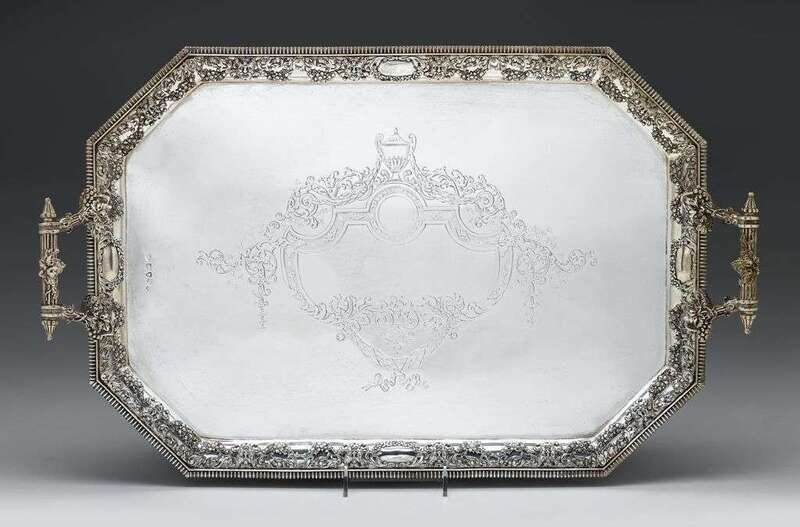 Victorian sterling silver tea tray stephen smith, london, 1885