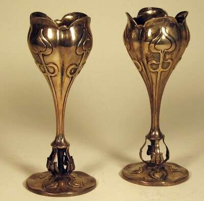 Matched pair of Art Nouveau sterling silver bud vases one marked william henry sparrow, birmingham, 1904