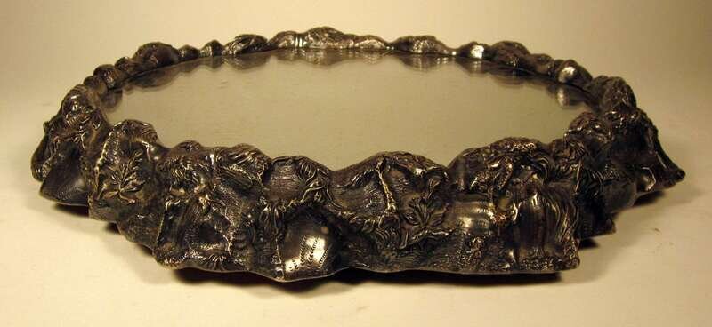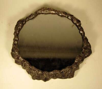The shaped circular mirror plate set into a naturalistically cast base.