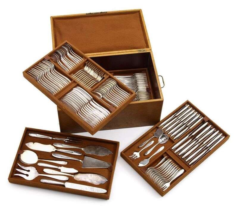 Service for 12, with 22 serving pieces in a fitted case, 166 pieces total.
