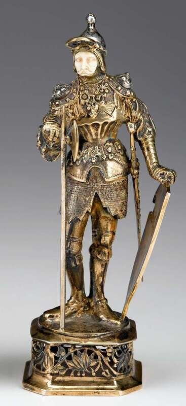 German sterling silver, silver gilt and ivory figure of a knight early 20th century