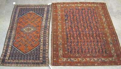 Two rugs: a Malayer rug, West Persia circa 1900, 6 ft. 2 in. x 4 ft. 11 in.; and a Hamadan rug, West Persia circa 1920, 5 ft. 11 in. x 3 ft. 5 in. (2)