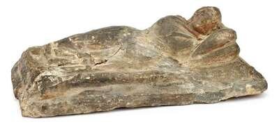 Rectangular, modeled with a nearly full relief figure of a sleeping woman, with traces of red paint.