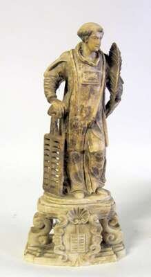 Continental alabaster and parcel gilt figure of St. Lawrence 17th/18th century