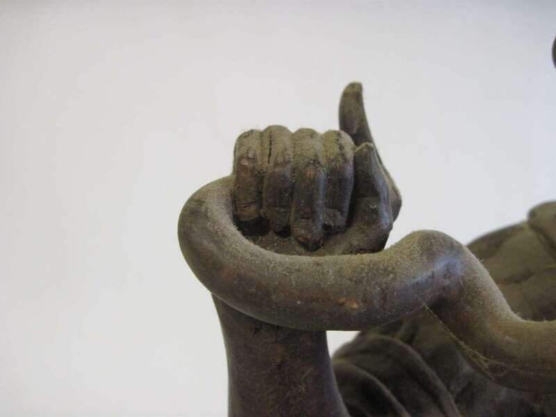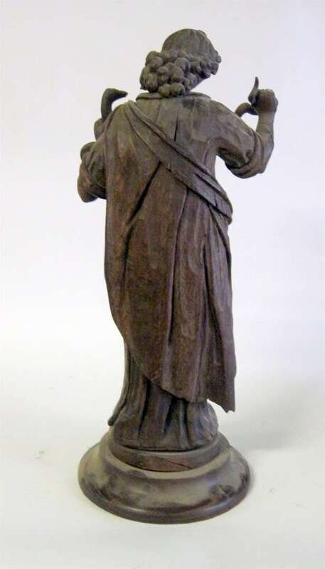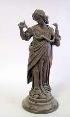 The robed figure depicted holding a serpent with both hands, raised on a molded circular base.