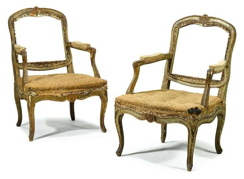 Fine pair of Italian green painted and gilt open armchairs 18th century