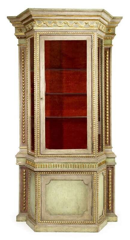Italian gray painted and gilt vitrine cabinet part 18th century