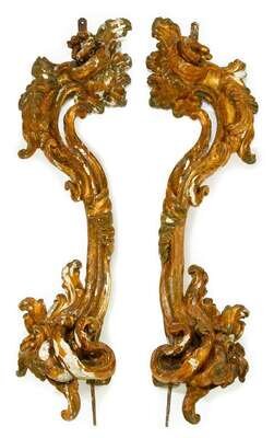 Pair of Italian Rococo giltwood architectural pediments 18th century