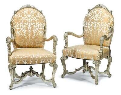 Pair of Italian Rococo style silvered armchairs
