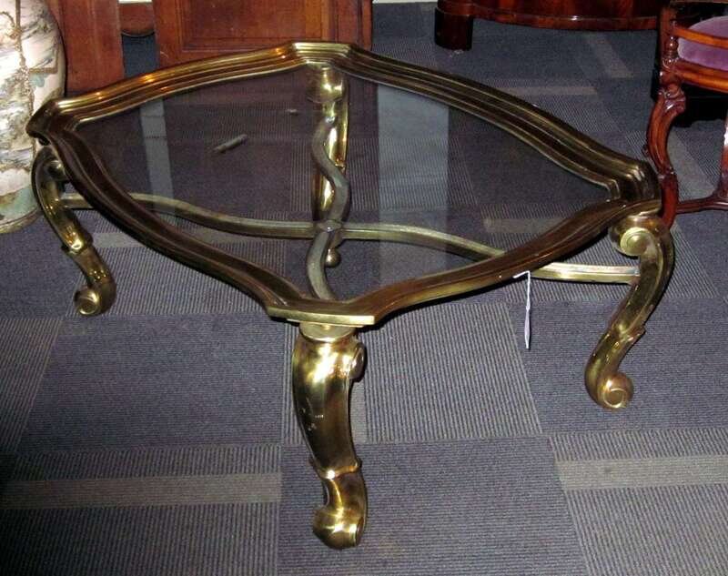 Baroque style brass and glass low table