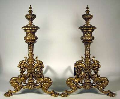 Pair of Baroque style gilt metal andirons