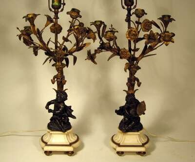 Pair of Louis XV style gilt and patinated metal lamps early 20th century