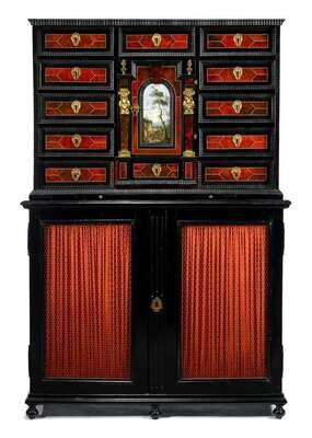 Flemish Baroque style tortoiseshell, ivory and ebonized cabinet on stand 19th century