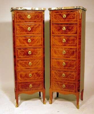Pair of Transitional style gilt bronze mounted kingwood semainiers early 20th century