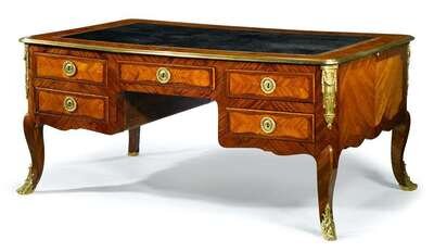 Impressive Transitional style kingwood, tulipwood and gilt bronze mounted bureau plat late 19th century